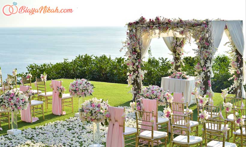 Pesta pernikahan tanpa tenda tertutup? Tentu saja bisa, kalian dapat mencoba dekorasi outdoor atau ruang terbuka karena alat dan bahan yang diperlukan jauh lebih simple karena hanya perlu mendekor beberapa bagian saja seperti panggung, background, dan area tempat duduk tamu.