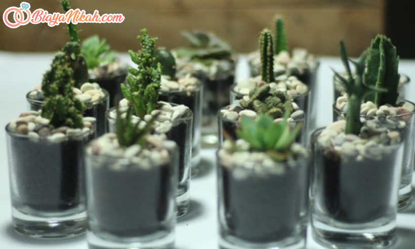 Buat yang tertarik untuk membeli souvenir anti mainstream, maka mini terarium bisa dipilih. Selain cocok dijadikan sebagai pajangan di rumah, souvenir pernikahan kekinian satu ini juga sangat pas digunakan untuk sarana belajar anak tentang mini ekosistem.