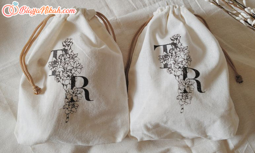 Bila ingin lebih eksklusif, maka kalian bisa menyablonnya dengan tulisan berupa nama dan tanggal pernikahan kalian dan pasangan. Namun, harganya tentu akan lebih mahal dibandingkan dengan polosan.