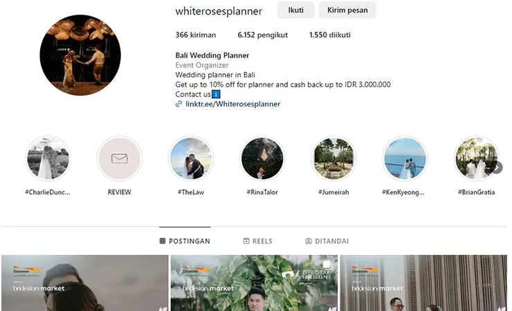 White Roses Planner adalah jasa perencanaan pernikahan di kota Bali yang sering mengadakan promo paket pernikahan. Untuk harga paker pernikahan paling murah yaitu 30 jutaan.